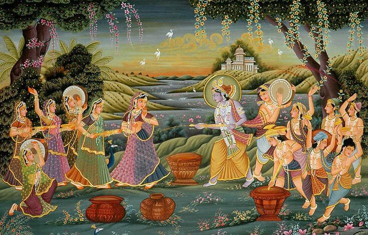 अपनी बात मोसौं कहि री भामिनी, औंगी मौंगी रहत गरव की माती। हौं तोसौं कहत हारी सुनि री राधिका प्यारी, निसि कौ रंग क्यों न कहत लजाती ॥ गलित कुसुम बैनी सुनि री सारंग नैनी, छूटी लट अचरा वदत अलसाती। अधर निरंग रंग रच्यौरी कपोलन, जुवति चलत गज गति अरुझाती ॥ रहसि रमी छबीले रसन वसन ढीले, शिथिल कसन कंचुकी उर राती। सखी सों सुनि श्रवन वचन मुदित मन, चली हरिवंश भवन मुसिकाती ॥५॥